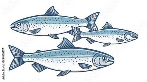 Detailed Outline Icon Representing Different Sizes of Trout Fish