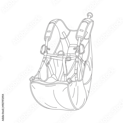 Detailed sketch of a harness backpack with adjustable straps and buckles isolated on white background minimalist design