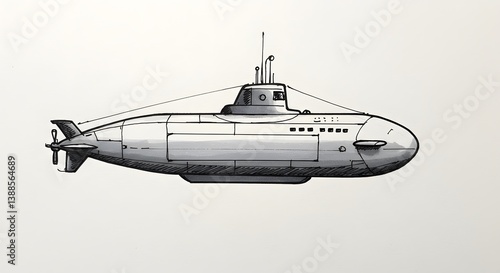 Detailed Submarine Illustration Depicts Nautical Vessel on Plain Background
