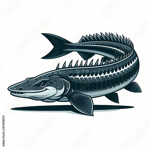 detailed Vector of a Sakhalin Sturgeon on flat white background