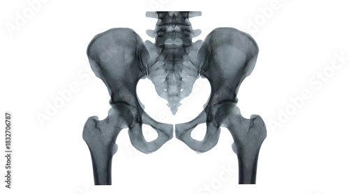 Detailed view of a human pelvis and hip bones with clear anatomical features and structure