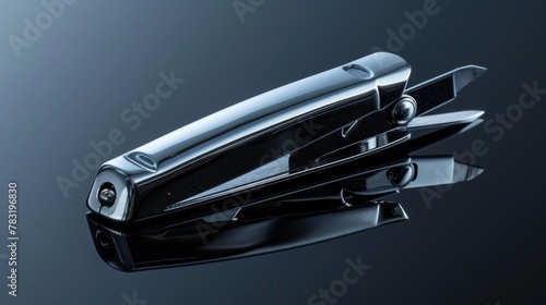 Detailed view of a sleek nail clipper, isolated and poised for precision trimming