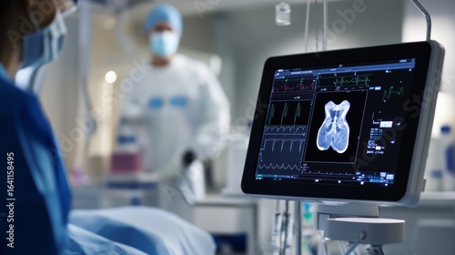 detailed virtual checkup process with step-by-step interface on monitor,