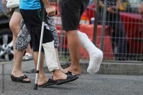 Details of the leg in a plaster cast
