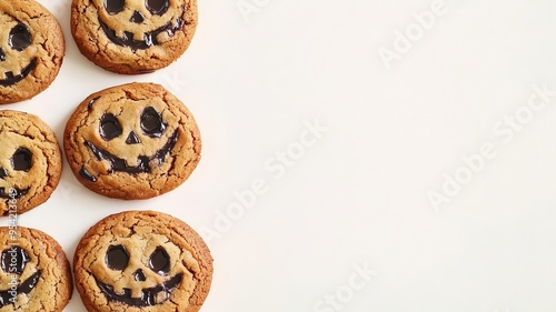 Devilish grin cookies, dark chocolate, spooky Halloween vibe, Watercolor style