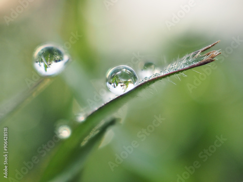 Dew drops on the grass in the morning