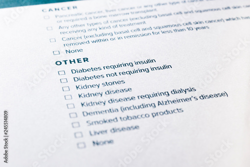 Diabetes and kidney disease content on health insurance questionnaire.