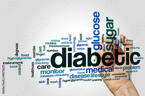 Diabetic word cloud concept on grey background