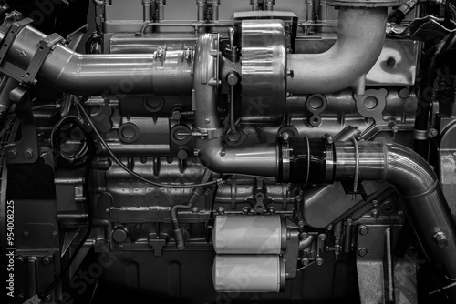 diesel engine. Fragment of a diesel motor close-up. Engine details Diesel engine backgroundbackground