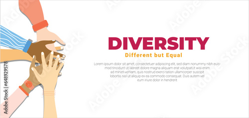 different but equal and diversity skins hands touching each other design, people multiethnic race and community theme Vector illustration