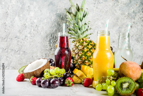 Different fruit juices and smoothies