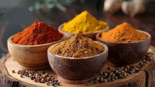 Different kinds of masala on a chalk background for restaurant. Generative AI.