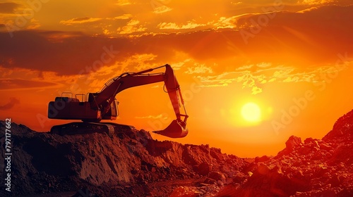 Digger machines working in sun view