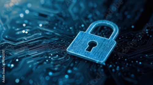 Digital Background Featuring Open Padlock Symbol on Circuit Board with Glowing Details and Modern Aesthetic