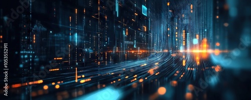 Digital background perfect for tech processes, neural networks, artificial intelligence, data transfer and encryption, digital archives, sound and graphic presentations, science, education, etc.