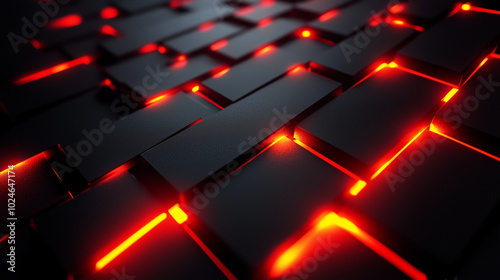 Digital Black Tiles With Glowing Red Lights Between Gaps Futuristic 3D Design