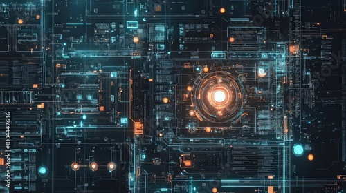Digital blueprints of a futuristic AI system, showing intricate hidden layers of machine learning models.