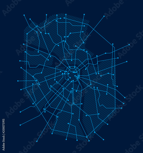 Digital city. Plan of the city in the form of an electronic scheme. Stylized linear drawing. Blue. Vector graphics