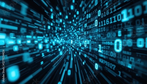 Digital Data Stream with Binary Code Flowing in Abstract Design