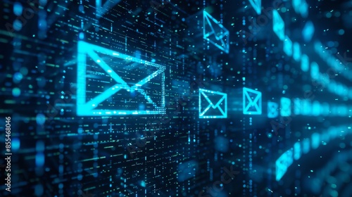 Digital email icons on a futuristic virtual background, communication concept