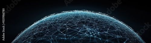 Digital globe made of interconnected lines and dots on a dark background, symbolizing connectivity.