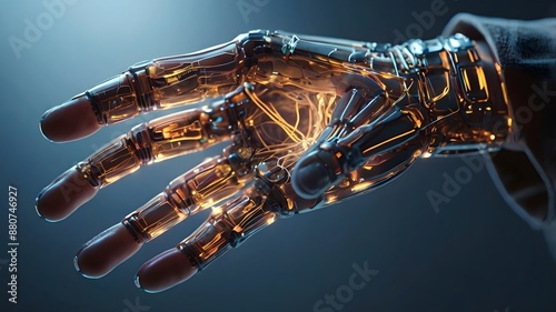 Digital Hand with Intricate Lines and Glowing Nodes