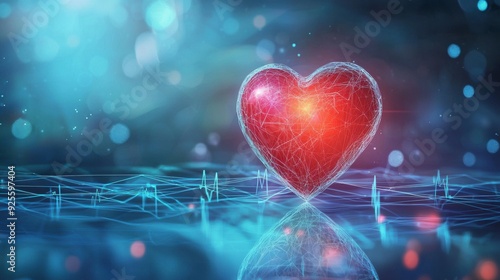 Digital human heart with holographic medical data on a blue background, the concept of technology and medicine.