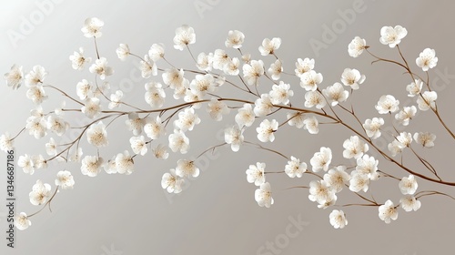 Digital illustration of a delicate branch with small white gypsophila flowers isolated on a transparent PNG
