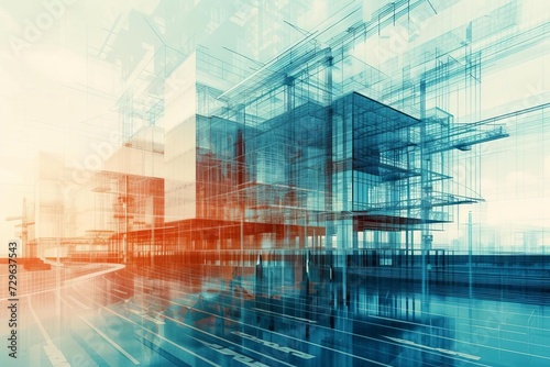 Digital illustration of a futuristic building construction With double exposure graphic design Symbolizing modern engineering and architectural innovation