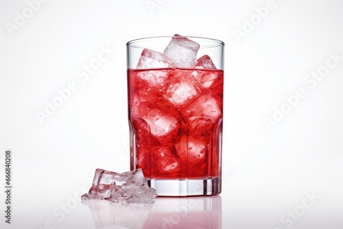 Digital illustration of glass with ice and red drink, white background. Generative AI