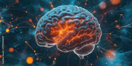 Digital illustration representing brain function and the concept of neurocomputing, where neural networks are compared to the intricate connections in the human brain.