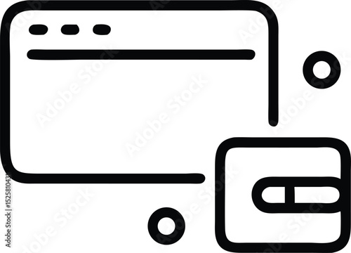 Digital interface design featuring sliders and wallet icons in black silhouettes