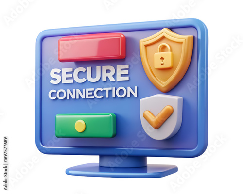 Digital literacy helps you leave a positive online footprint Graphic representing secure internet connection with colorful buttons and shields.