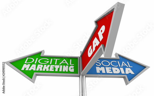 Digital Marketing Social Media Gap Strategy Plan Signs 3d Illustration