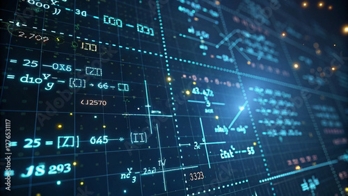 Digital Matrix Filled with Glowing Mathematical Equations and Formulas