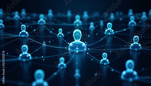 Digital Network Connection with Glowing Human Figures, Futuristic Technology Concept