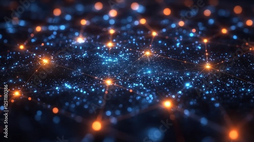 Digital network glowing nodes, abstract background, technology concept