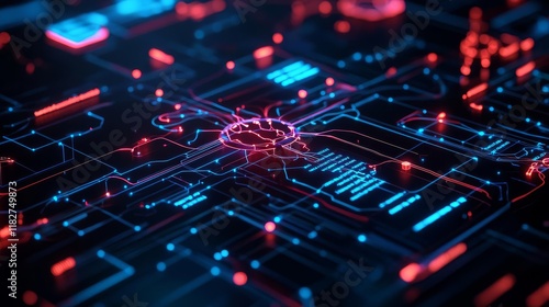 Digital neuron network visualized with futuristic glowing elements, bold and modern