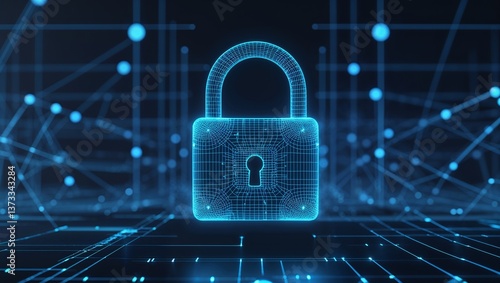 Digital Padlock with Neon Glow - Modern Cybersecurity Symbol