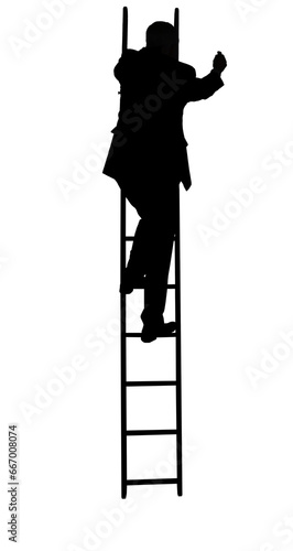 Digital png illustration of silhouette of businessman standing on ladder on transparent background