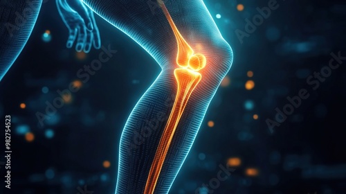 Digital Representation of a Human Knee Joint On Dark Background. Problem Of Joint Diseases, Medical Topics. 3D Illustration. Generate Ai Image