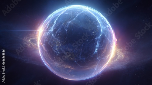 Digital shield, protecting planet from viruses, 3D illustration.