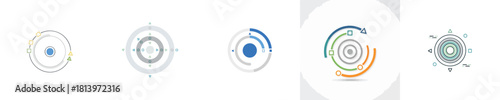 Digital Target and UI Radar Screen Flat Vector Icon Set