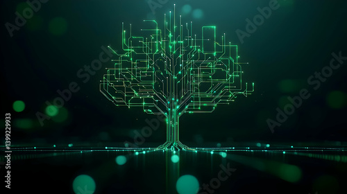 Digital Technology Tree Design With Glowing Green Lines