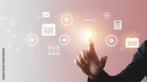 Digital Touch Interaction with Calendar and Finance Icons Concept
