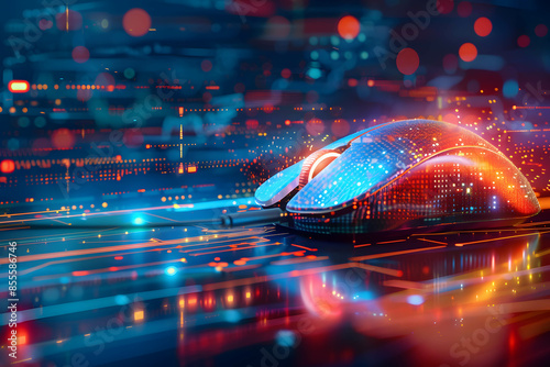 Digital transformation concept, using digital technology to improve or changing processes and operations and creating new ones, computer mouse with light effects
