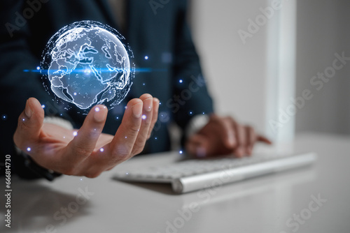 Digital transformation Hand touching the Metaverse Universe, A Conceptual Shift in Digital Transformation for Next-Generation Technology.