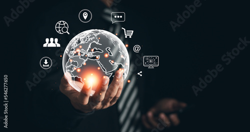 Digital transformation technology strategy, Global communication network concept. Business Process Digitization.