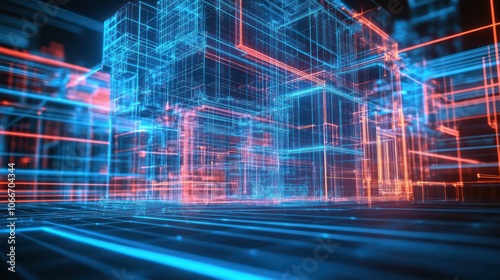 Digital twin technology revolutionizing the construction industry by enabling precise virtual models of real-world structures. Illustrations