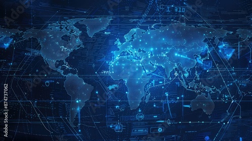 Digital World Map with Futuristic Technology Interface